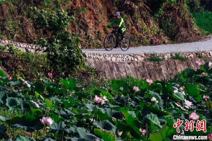 游客在花海中騎行?!±钅宪?nbsp;攝