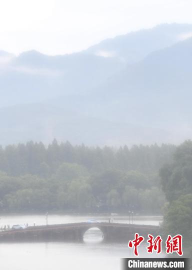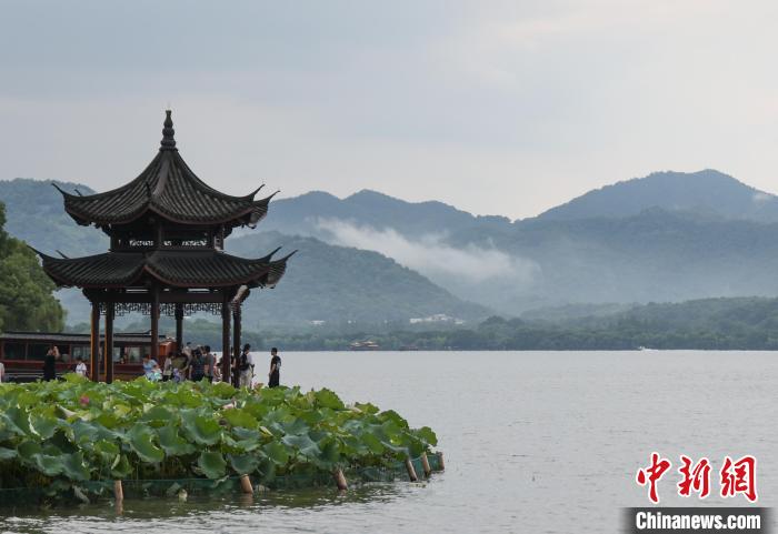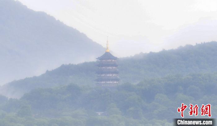 持續(xù)高溫天氣后,杭州終于迎來降雨,久違的大雨讓西湖景點(diǎn)和群山在雨水和云霧中呈現(xiàn),朦朧的景致如一幅山水畫一樣,引游人觀賞。