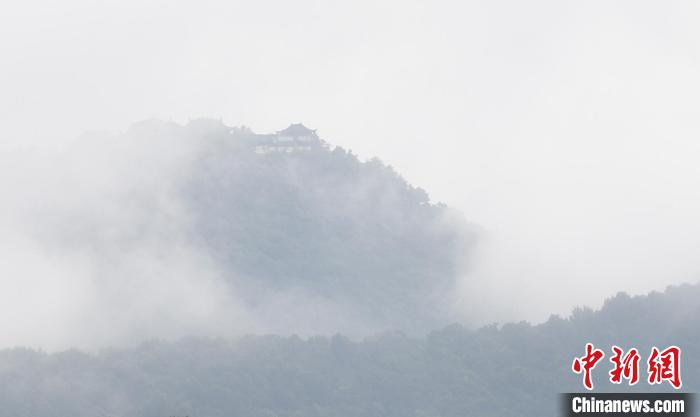 圖為西湖雷峰塔附近山區(qū)輕霧縹緲?!⊥鮿偂z
