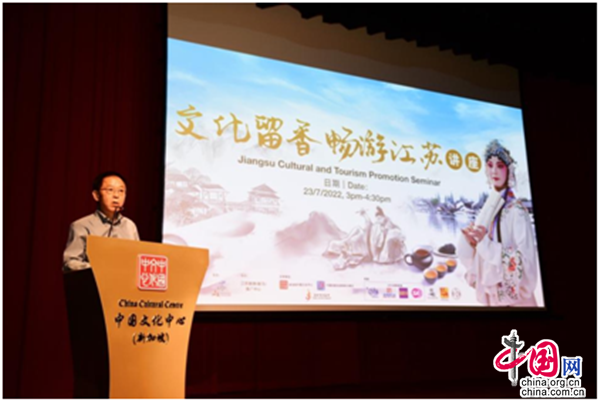 由江蘇省文化和旅游廳主辦、江蘇旅游(新馬)推廣中心協(xié)辦,新加坡中國(guó)文化中心、中國(guó)駐新加坡旅游辦事處及新加坡江蘇會(huì)全力支持的“文化留香·暢游江蘇”講座,于2022年7月23日(星期六)在新加坡中國(guó)文化中心4樓劇場(chǎng)舉行。江蘇省文化和旅游廳副廳長(zhǎng)李川通過(guò)連線參與本次活動(dòng),新加坡旅游局助理署長(zhǎng)(國(guó)際司)陳蕙敏、中國(guó)文化中心兼中國(guó)駐新加坡旅游辦事處主任肖江華、江蘇省駐新加坡經(jīng)貿(mào)代表處主任代表沈立國(guó),以及來(lái)自新加坡文化藝術(shù)界、旅游界、商界、社團(tuán)、新聞媒體及市民大眾等逾200名觀眾現(xiàn)場(chǎng)出席活動(dòng)。