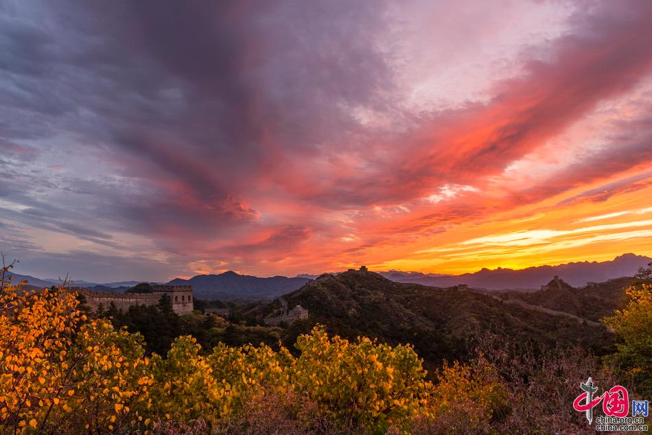 金山嶺長(zhǎng)城層嶺盡染萬(wàn)山紅遍 最是秋好霜重色濃