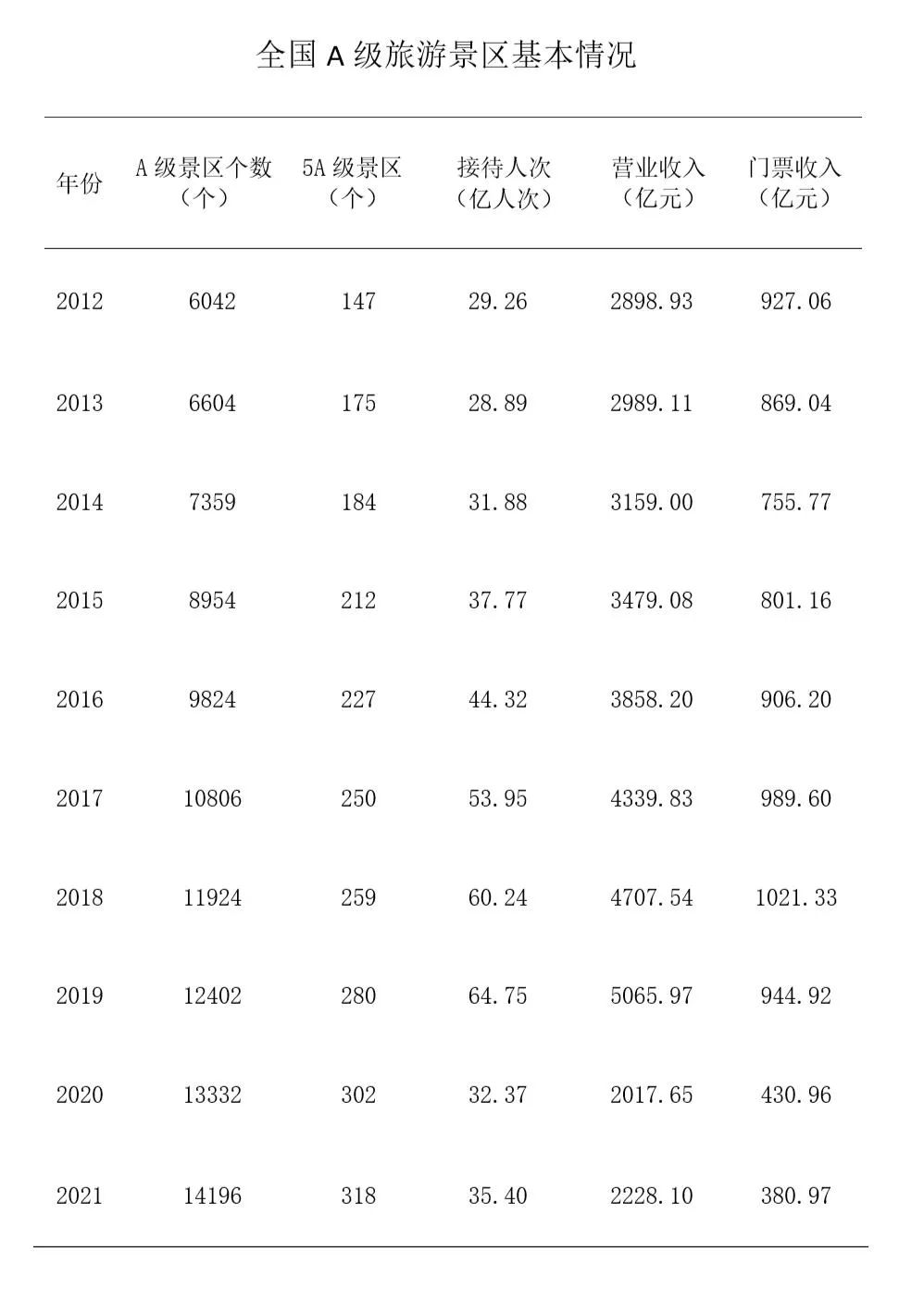 統(tǒng)計(jì)數(shù)據(jù)顯示,2021年全國A級旅游景區(qū)個數(shù)達(dá)到14196個,全國A級旅游景區(qū)接待游客35.4億人次。