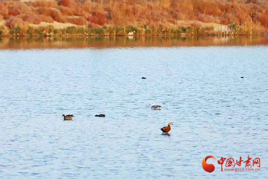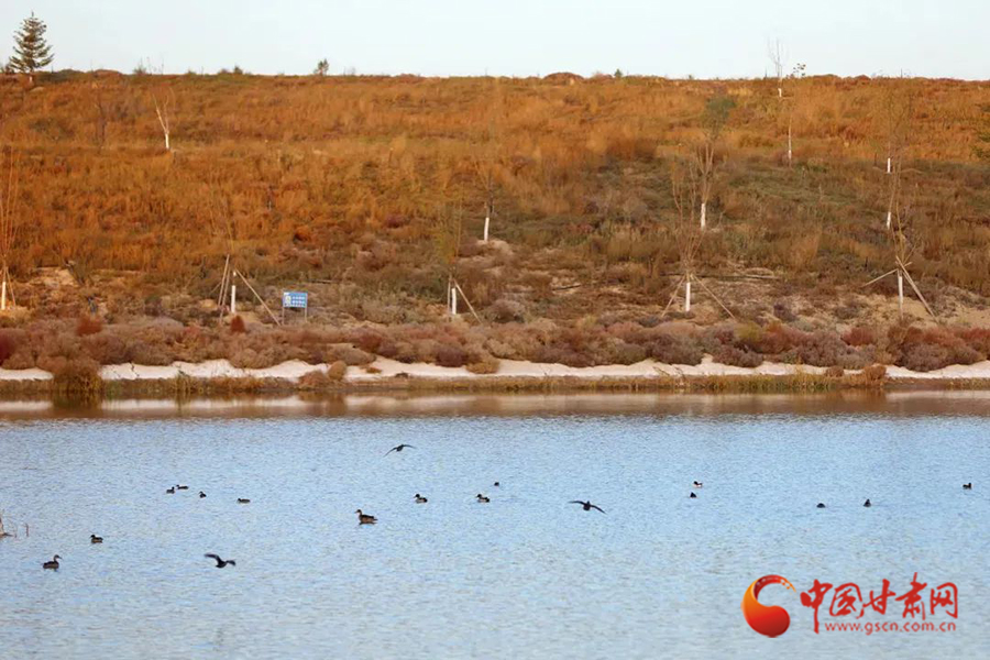10月的蘭州新區(qū)水阜河,天氣微涼、秋色漸濃。成群的灰鶴、野鴨等野生鳥類棲息覓食、飛鳥嬉戲。每到傍晚,呈現(xiàn)出落霞與孤鶩齊飛,秋水共長(zhǎng)天一色的美景。