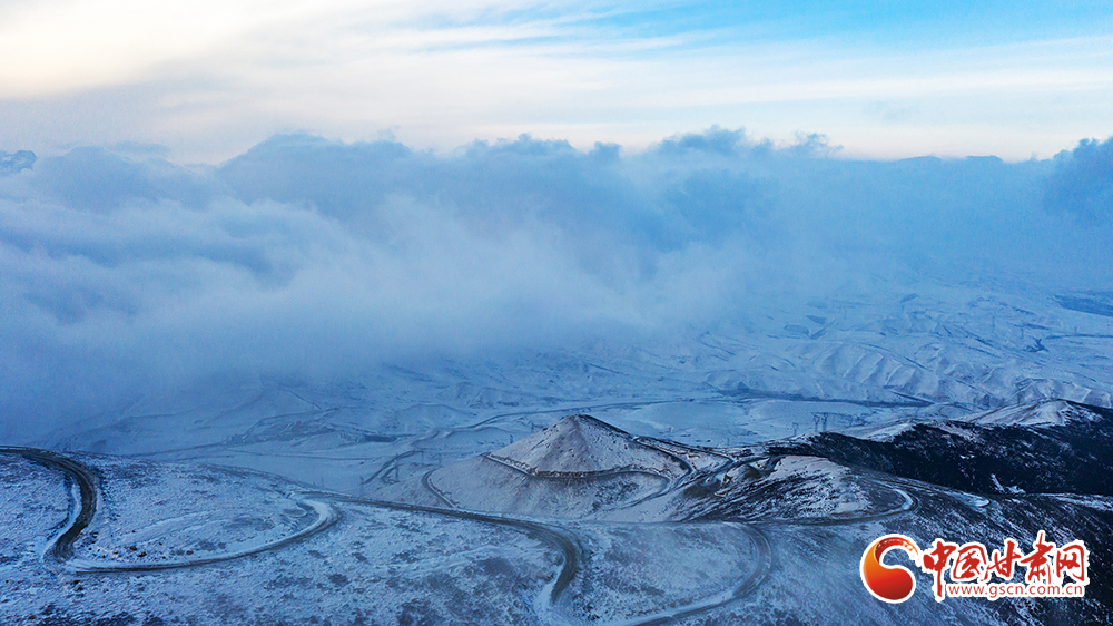 近日,一場降雪過后,武威市天??h烏鞘嶺出現(xiàn)云海景觀。從海拔3562米的毛毛山俯瞰,大地銀裝素裹,雪山巍峨,云海起伏,云霧沿著山脊緩緩流動,好似潔白的綢緞,美如仙境。