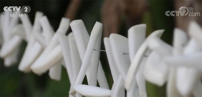 四川省瀘州市納溪區(qū)豐樂鎮(zhèn)村民 李焱梅:切得時候是有規(guī)矩的,先切成片,然后切成一條一條的斜杠,牽起來一片就是一條。