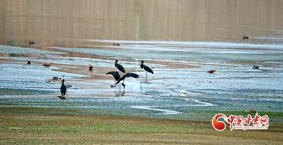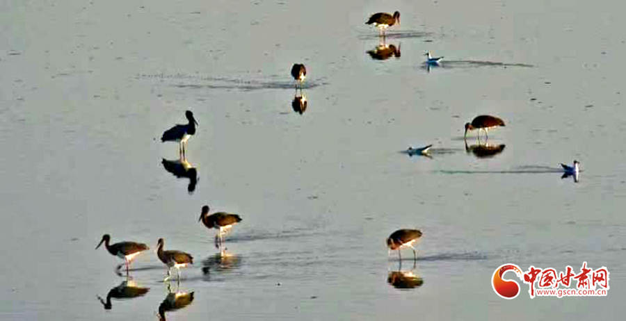 近日,山丹縣濕地保護(hù)站工作人員在開展候鳥監(jiān)測工作時發(fā)現(xiàn)14只被稱為“鳥中大熊貓”的黑鸛。