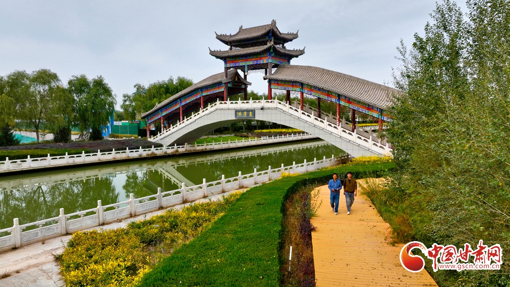 10月5日,鳥瞰甘肅省張掖市臨澤縣,人行步道沿湖蜿蜒,湖水清澈潔凈,岸邊美景倒映湖中,一幅繪著水鄉(xiāng)之美的畫卷躍然眼前。