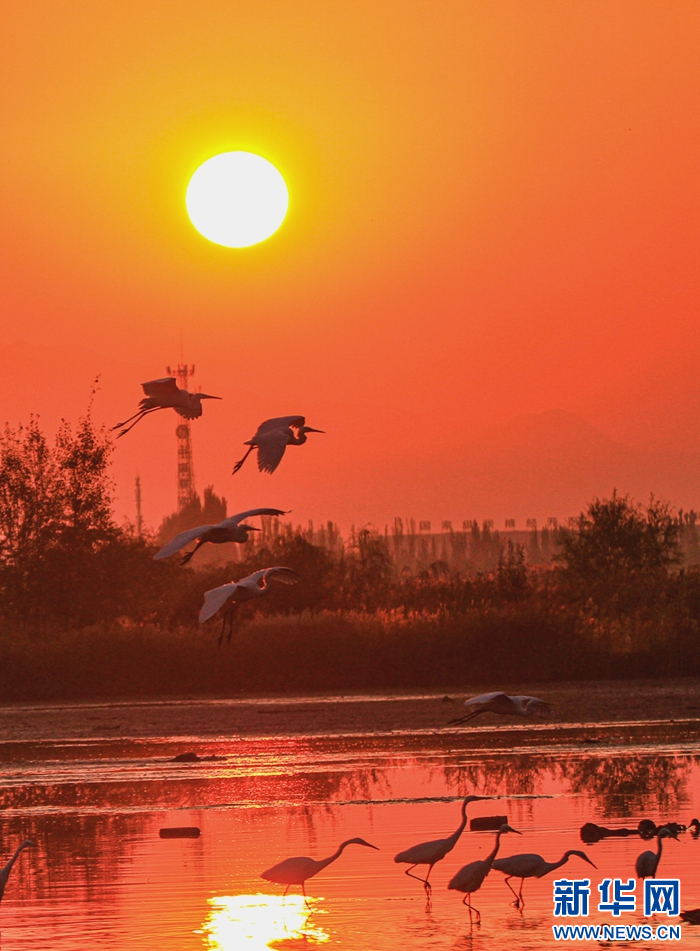 【大美甘肅】甘肅張掖:朝陽伴鷺飛
