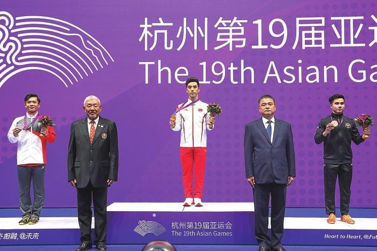 常志昭(中)在杭州亞運(yùn)會(huì)領(lǐng)獎(jiǎng)臺(tái)上。