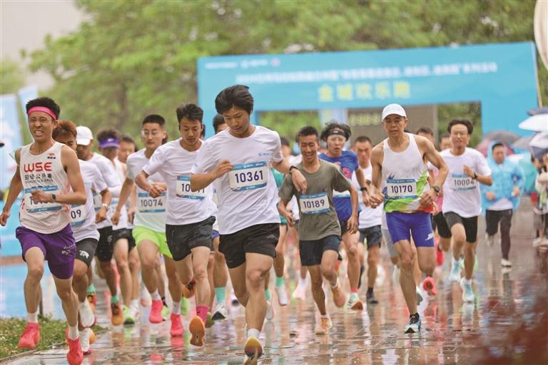 參賽者在細(xì)雨中歡樂(lè)開(kāi)跑