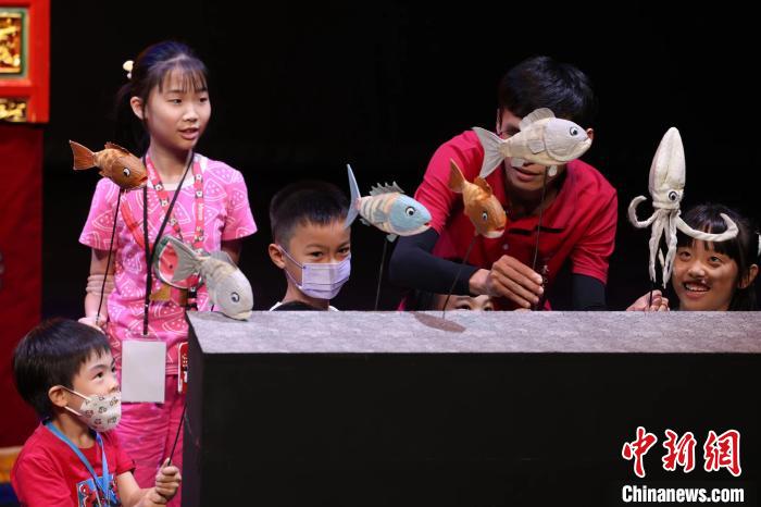 7月10日,臺灣傳統(tǒng)藝術中心2024兒童戲曲巡演活動“請囡仔來看戲”在臺北起跑。圖為臺北木偶劇團在記者會現(xiàn)場為兒童表演。(臺灣傳統(tǒng)藝術中心 供圖)