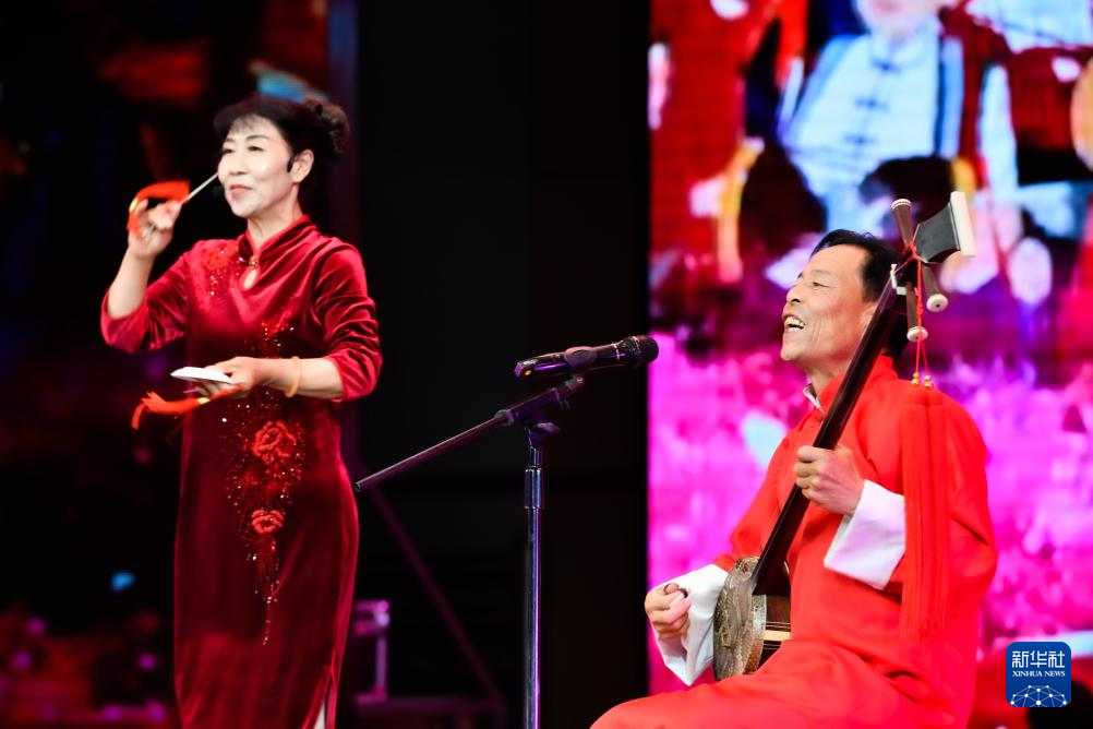 7月12日,演員表演涼州賢孝《民族團結(jié)一家親》。新華社記者 郎兵兵 攝