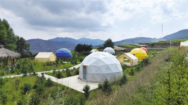 沿興隆山大道進入滿目翠綠的原始森林,隨著彎曲的盤山公路走進了哈班岔村時,首先映入眼簾的便是層層遠山間科技范十足的民宿太空艙和造型獨特的露營帳篷,山坡上植被茂密,臨近山腳下的梯田色彩豐富,將一幅自然與人文相互映襯的鄉(xiāng)村畫卷展現在人們面前。