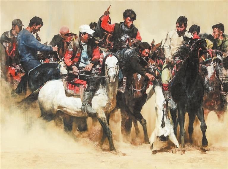 非遺——塔吉克叼羊 (油畫) 張國(guó)鋒 (本版文圖由甘肅省美術(shù)家協(xié)會(huì)提供)