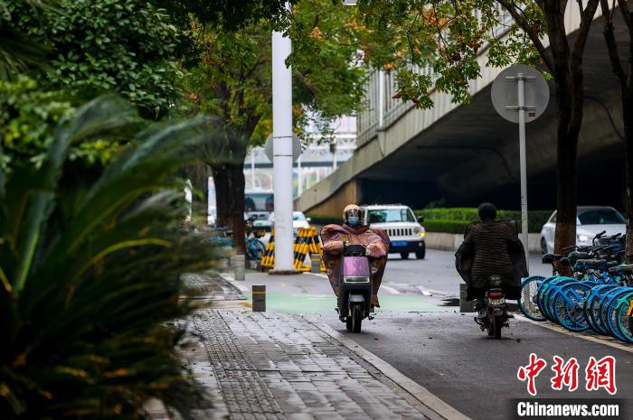 11月25日,市民在街頭出行。當(dāng)日,武漢受寒潮天氣影響,氣溫下降明顯。武漢市氣象臺(tái)24日18時(shí)27分發(fā)布寒潮藍(lán)色預(yù)警信號(hào),受較強(qiáng)冷空氣影響,預(yù)計(jì)24日至26日,武漢最低氣溫降幅達(dá)7℃~9℃。中新社記者 張暢 攝