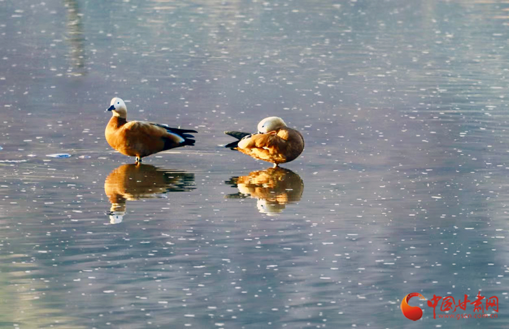 近日,平?jīng)龀缧庞瓉砹藬?shù)只水上客人——赤麻鴨。
