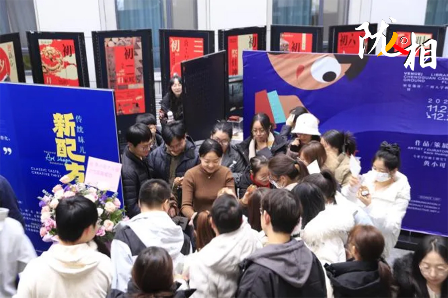 整體被搭建成“S”形的展區(qū),借鑒了博物館的陳展布局,讓參觀者不必走回頭路;展區(qū)第二部分陳列著各種文創(chuàng)玩偶的展臺赫然入目,讓人驚喜連連;展區(qū)外圍的留言墻,不僅有備好的A4紙,還貼心地粘上了馬克筆,方便觀眾留言……來參觀的人,即便對藝術(shù)不敏感也能被設(shè)計(jì)者的細(xì)心和創(chuàng)意輕松打動。