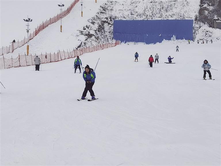 接著來到興隆山滑雪場,這里是冰雪運動愛好者的歡樂天地。滑雪場經(jīng)理賈青云介紹,該滑雪場占地超400畝,擁有5條初、中級滑雪道,是中初級滑雪愛好者的樂園,今年全新打造的兩萬平方米豪華“戲雪樂園”更是引人注目。“開業(yè)不到一個月,已接待游客一萬多人,周末日均客流量超一千,平日也有四、五百人,滑雪場可同時容納2000人滑雪。”賈青云表示,滑雪場近期推出了優(yōu)惠活動,原價128元的門票現(xiàn)只需88元,包含滑雪服和存衣柜的使用。值得一提的是,經(jīng)過改造升級后的滑雪場加入了波西米亞風(fēng)格,設(shè)有拍照打卡地和咖啡廳,成為年輕消費者熱衷的網(wǎng)紅打卡點,游客在此不僅能滑雪,還能享受火鍋、烤肉等美食,體驗別樣的冬日休閑時光。