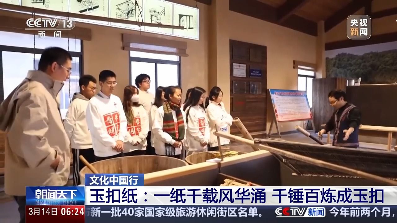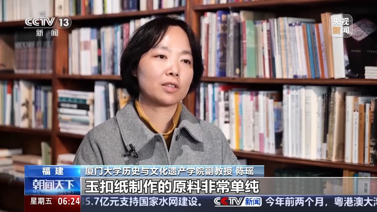 廈門大學(xué)歷史與文化遺產(chǎn)學(xué)院副教授 陳瑤:玉扣紙制作的原料非常單純。就是三種,一個是竹子嫩竹,第二個是石灰,第三個就是清潔的山泉水?;旧鲜羌兛咳斯磉M(jìn)行品質(zhì)的管控。