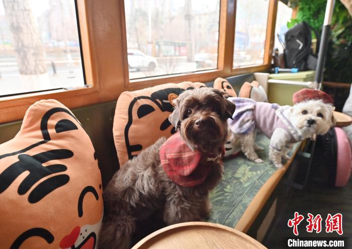 3月16日,吉林長(zhǎng)春,寵物們?cè)谲?chē)廂內(nèi)親密互動(dòng)。中新社記者 張瑤 攝