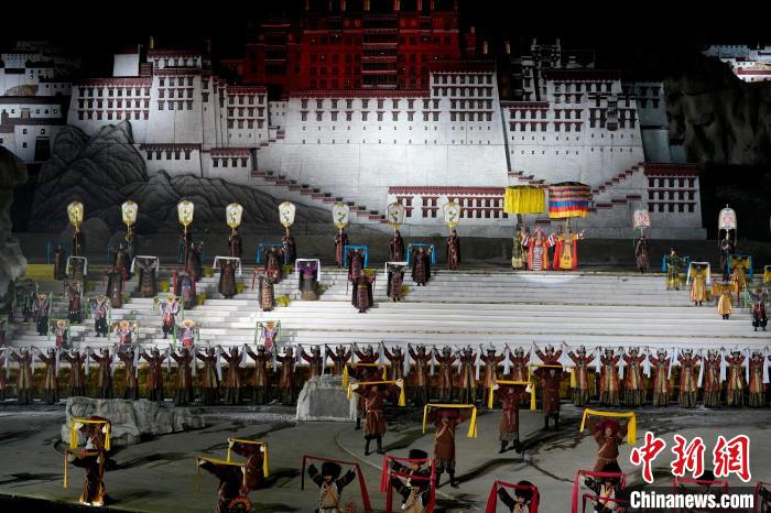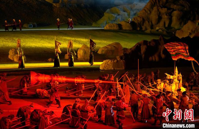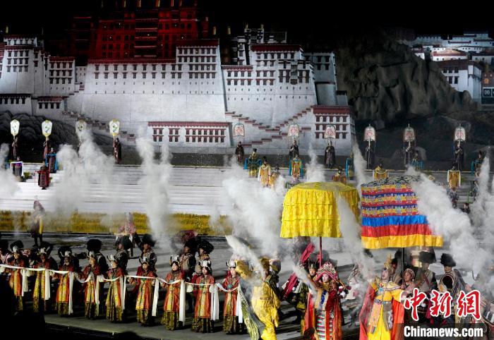 圖為《文成公主》大型實(shí)景劇第十三季演出現(xiàn)場(chǎng)。中新社記者 李林 攝