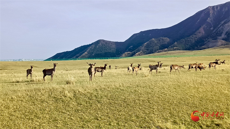 初夏的肅南大河草原牧草逐漸返青,一群群馬鹿在草原上悠閑覓食,游客到來(lái)并沒(méi)有打擾它們的正?;顒?dòng)。