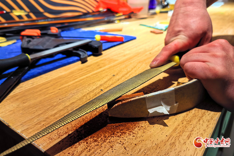 2011年,還是大學生的謝建戈在百度貼吧結識了山東臨沂“高氏傳統(tǒng)弓箭”非遺傳承人高超。囊中羞澀的他提出“先貨后款”,高超被這份赤誠打動,寄來第一套玻片弓料。一個月后,生活費一到賬,他第一時間把錢打了過去——網(wǎng)絡那端的高超從此記住了這個甘肅小伙。2012年,他做出人生第一把玻片弓。