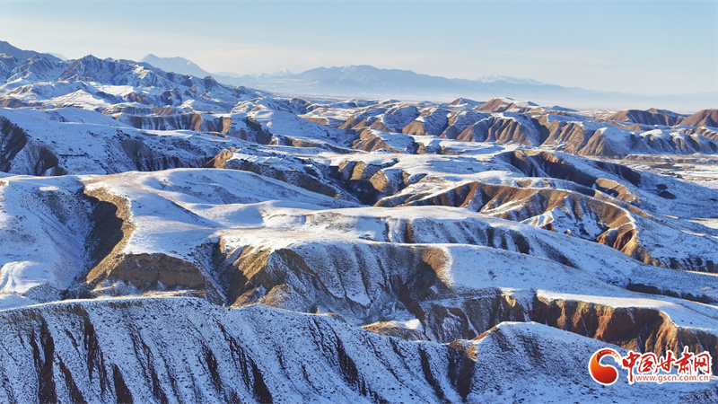 時下,位于民樂縣境內(nèi)的祁連山脈巍峨群峰被皚皚白雪覆蓋,蔚為壯觀。